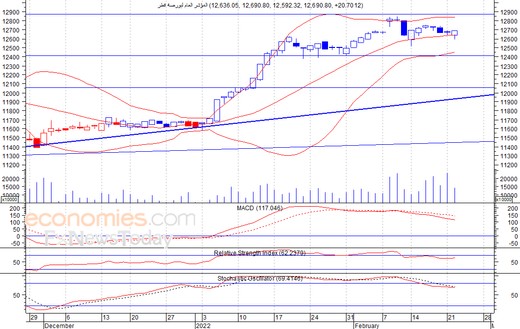 تمكن المؤشر من الارتفاع خلال جلسة امس الثلاثاء، حيث اغلق عند مستوى 12690نقطة، وهو اعلى مستوى يصل اليه المؤشر خلال الجلسة، وهو ما يعد اشارة ايجابية، لذلك نتوقع ان يتأرجح المؤشر بين مستوى 12400 ومستوى 12900 نقطة حتى اختراق احدهم.