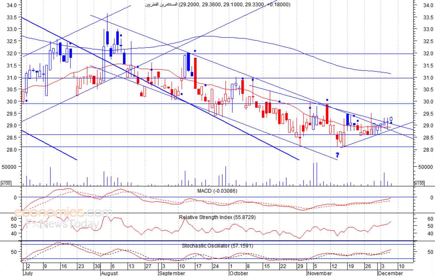 ومن المتوقع ان يكون النطاق السعري خلال جلسة اليوم بين مستوى الدعم وهو 29.17 وبين مستوى المقاومة هو 29.52 ريال