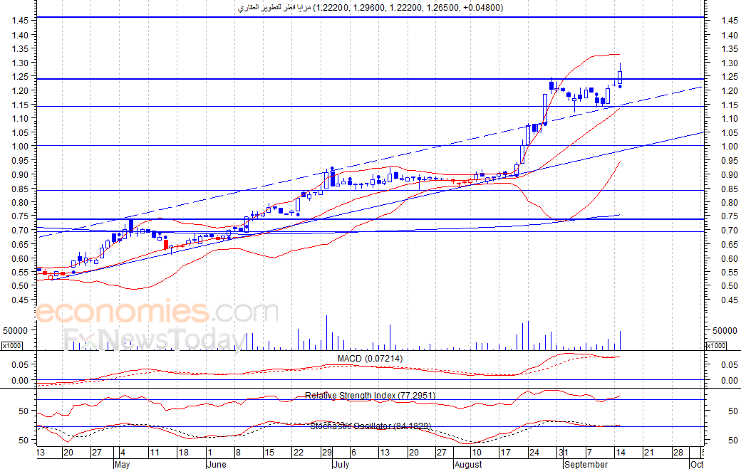 من المتوقع ان يكون النطاق السعري خلال جلسة اليوم بين مستوى الدعم وهو 1.23 وبين مستوى المقاومة هو 1.34 ريال