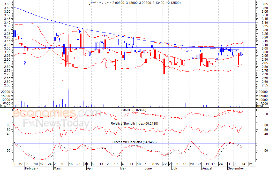 من المتوقع ان يكون النطاق السعري خلال جلسة اليوم بين مستوى الدعم وهو 3.1 وبين مستوى المقاومة هو 3.25 ريال