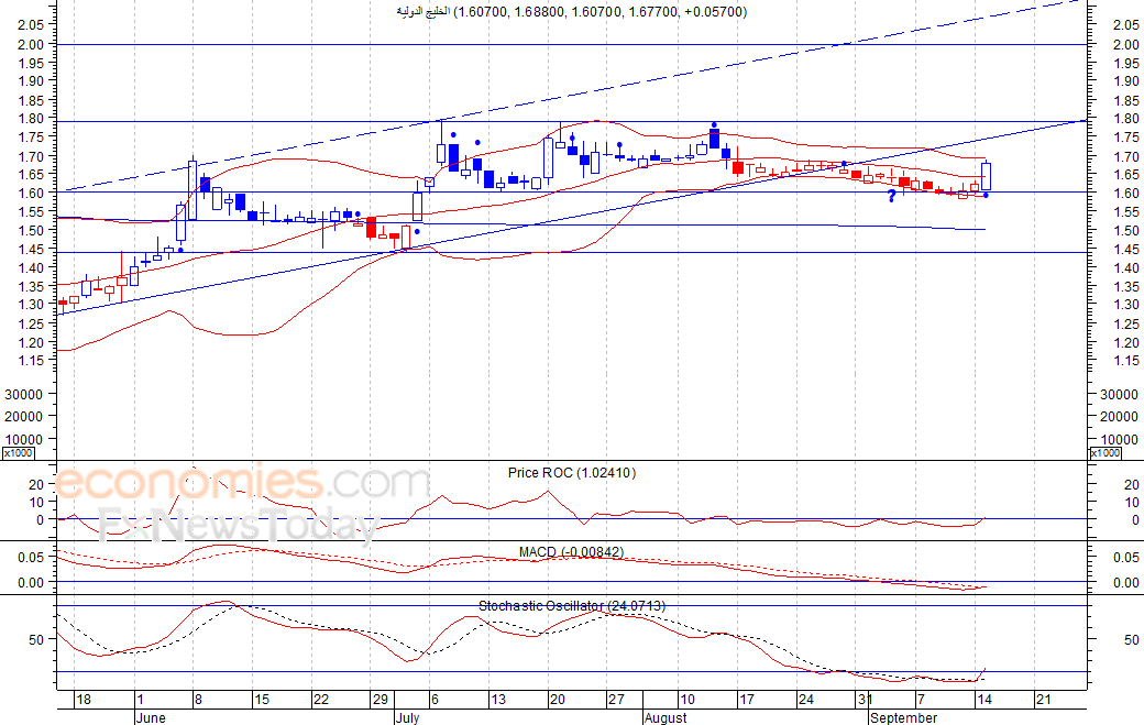 من المتوقع ان يكون النطاق السعري خلال جلسة اليوم بين مستوى الدعم وهو 1.65 وبين مستوى المقاومة هو 1.74 ريال