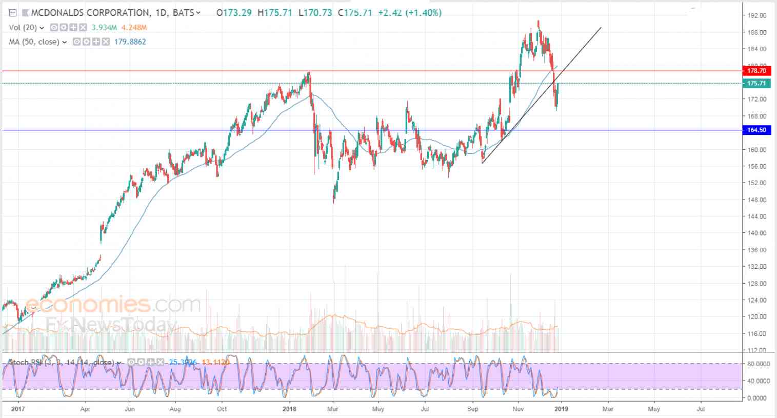 ولذلك نحن نرجح عودة انخفاض السهم خلال تداولاته القادمة ، طيلة ثبات المقاومة 178.70 ، ليستهدف مستوى الدعم 164.50 .