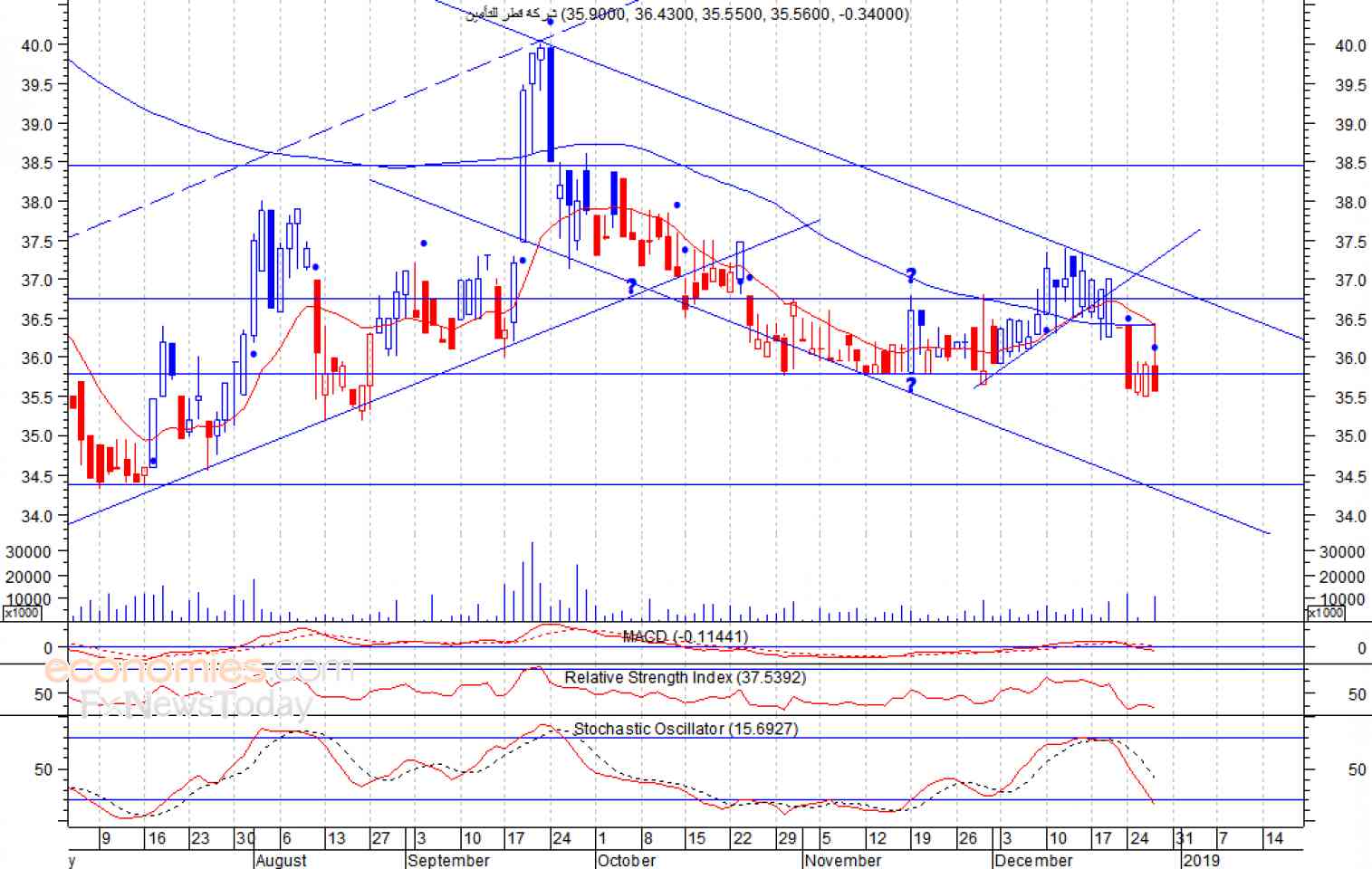 ومن المتوقع ان يكون النطاق السعري خلال جلسة اليوم بين مستوى الدعم هو 35.20 ريال وبين مستوى المقاومة هو 36 ريال