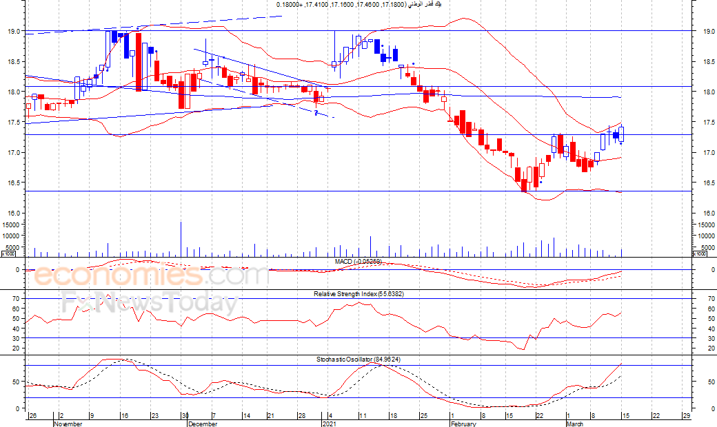 بنك قطر الوطني (QNBK) يعوض خسائر الاحد -تحليل صباحي- 16-03-2021