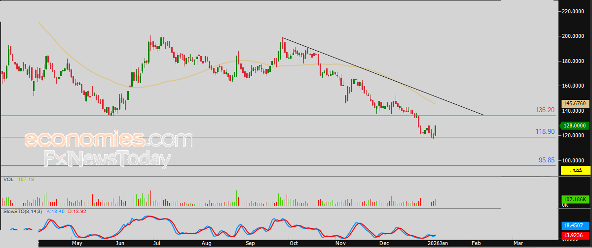 لهذا فتوقعاتنا تميل نحو عودة انخفاض سعر السهم خلال تداولاته القادمة، طيلة ثبات مستوى المقاومة المحوري 136.20 ريال، ليستهدف من جديد مستوى الدعم 118.90 ريال.