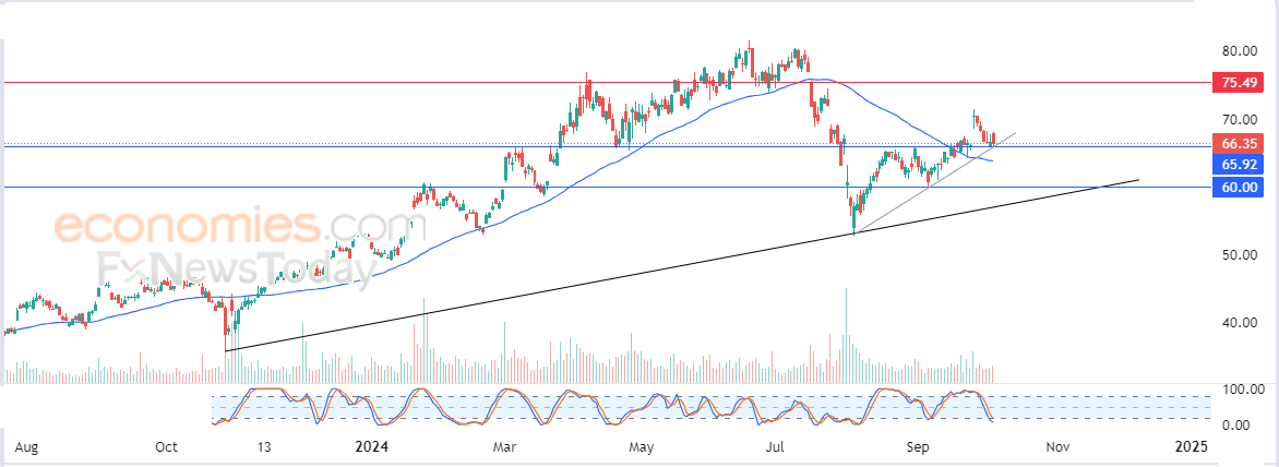 لذلك فتوقعاتنا ترجح عودة صعود سعر السهم خلال تداولاته القادمة، خاصة طيلة استقراره أعلى مستوى 65.90$، ليستهدف أولى مستويات المقاومة عند سعر 75.50$.