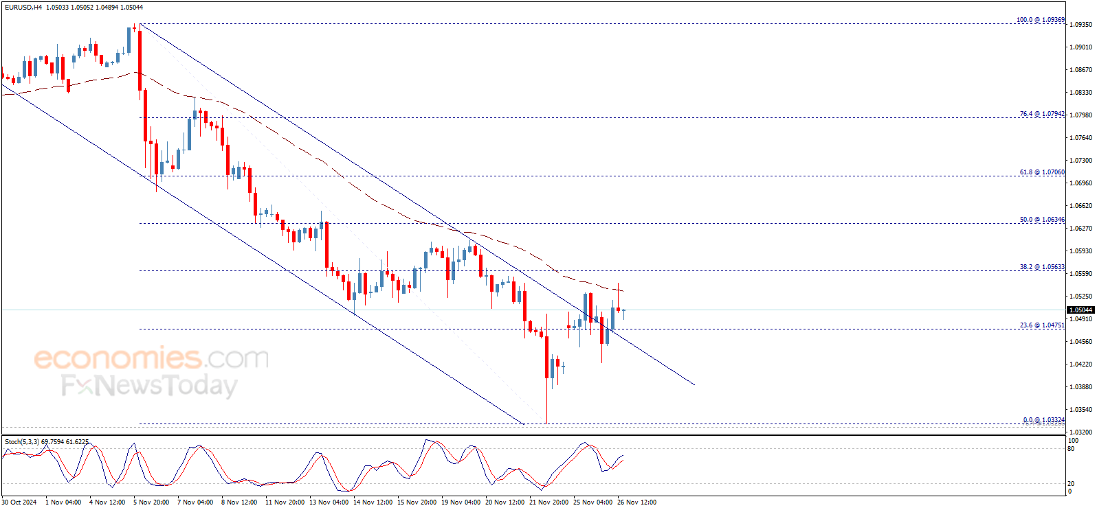 حقق سعر اليورو مقابل الدولار اختراقاً جديداً لمستوى 1.0475$ ليحاول بدء تصحيح صاعد على المدى اللحظي، مع الإشارة إلى أن التماسك فوق هذا المستوى سيدفع السعر لاختبار مستوى 1.0563$ كمحطة أولى، في حين إن التداول دونه من جديد سيعيد تفعيل الموجة الرئيسية الهابطة التي يتواجد هدفها التالي عند 1.0325$.