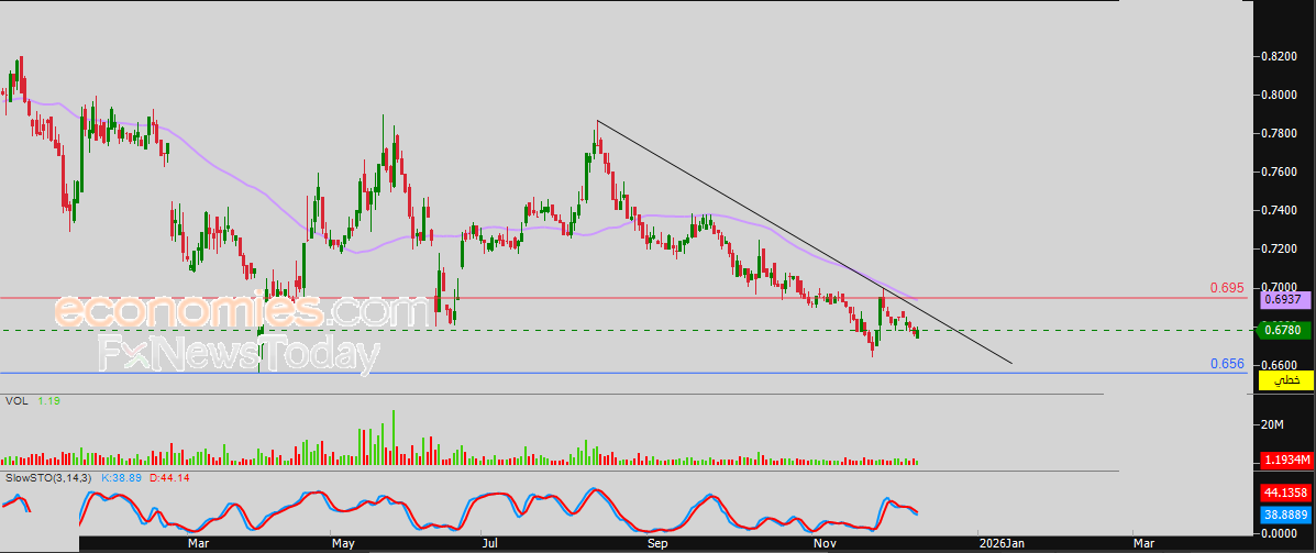 لهذا تشير توقعاتنا إلى هبوط سعر السهم خلال تداولاته القادمة، طيلة ثبات مستوى المقاومة 0.695 ريال، ليستهدف مستوى الدعم المحوري 0.656 ريال.
