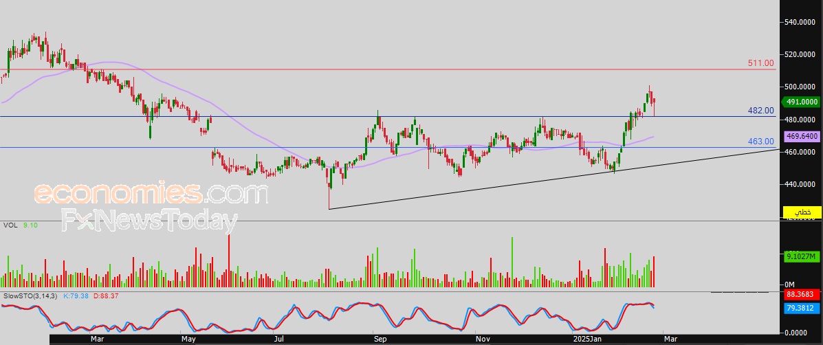 استطاع سعر سهم زين (ZAIN) من أن ينقذ نفسه من الخسائر المبكرة التي شهدها ببداية تداولات الجلسة، والتي كانت تهدف جني أرباح ارتفاعاته السابقة، وليحاول تصريف البعض من تشبعه الشرائي الواضح بمؤشرات القوة النسبية، خاصة مع بدء توارد الإشارات السلبية منها، ليستجمع قواه الإيجابية وليستعيد تعافيه، وعلى اثر استناده لمستوى الدعم المهم 482.00 دينار استطاع اكتساب هذا الزخم الإيجابي الذي ساعده على الارتداد ليحول خسائره المبكرة إلى مكاسب طفيفة في نهاية التداولات، في ظل سيطرة الاتجاه التصحيحي الصاعد على المدى القصير وتداولاته بمحاذاة خط اتجاه، مع تواصل الضغط الإيجابي بسبب تداولاته اعلى متوسطه المتحرك البسيط لفترة 50 يوماً السابقة.