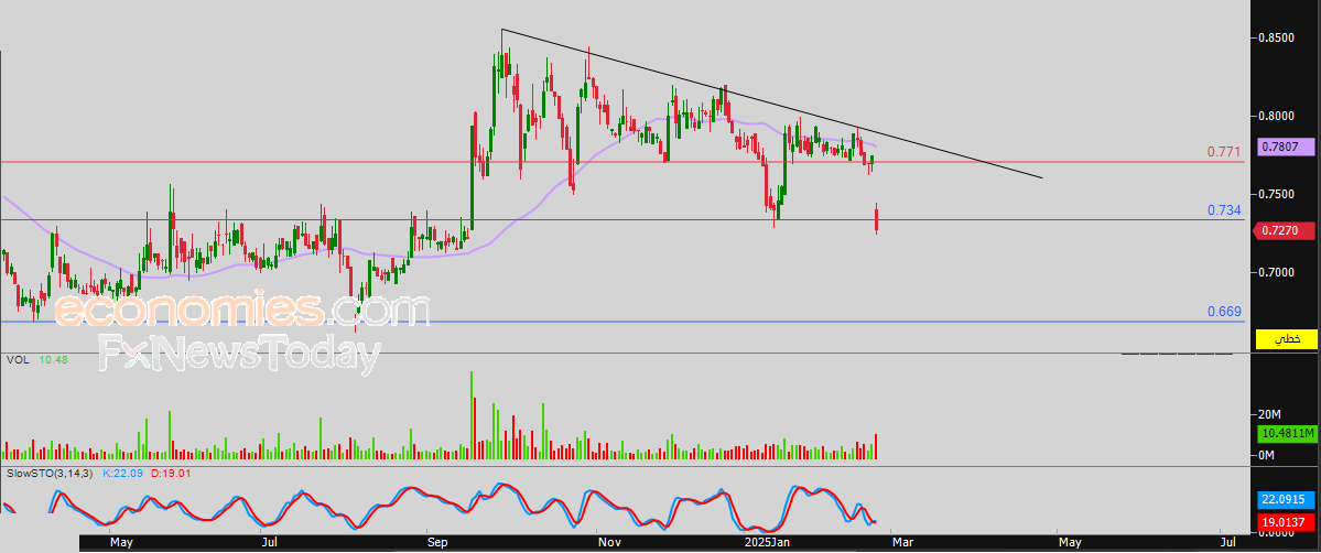 انزلق سعر سهم الاجارة (NLCS) انخفاضاً خلال تداولاته الأخيرة على المستويات اللحظية، وسط سيطرة الاتجاه التصحيحي الهابط على المدى القصير وتداولاته بمحاذاة خط اتجاه، مع تواصل الضغط السلبي بسبب تداولاته دون متوسطه المتحرك البسيط لفترة 50 يوماً السابقة، بالإضافة لتوارد الإشارات السلبية بمؤشرات القوة النسبية، بالرغم من وصولها لمناطق شديدة التشبع بعمليات البيع، ليكسر السهم بانخفاضه الأخير مستوى الدعم المهم 0.734 ريال.