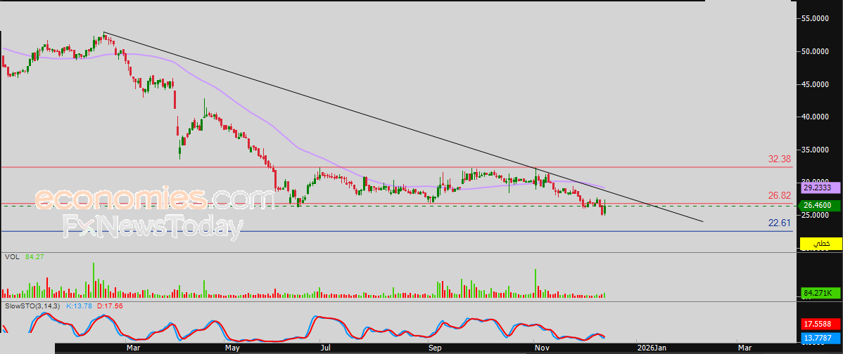 لذلك فتوقعاتنا تميل نحو هبوط سعر السهم خلال تداولاته القادمة، خاصة في حالة ثبات مستوى المقاومة المذكور 26.82 ريال، ليستهدف مستوى الدعم 22.60 ريال.
