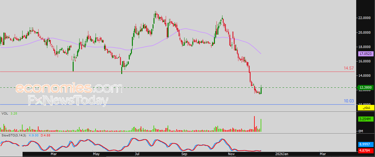 لهذا تشير توقعاتنا إلى انخفاض سعر السهم خلال تداولاته القادمة، ليستهدف مستوى الدعم 10.00 ريال، مع وجود فرص قوية لتمديد مكاسبه الحذرة ليعيد اختبار مستوى المقاومة المحوري 14.55 ريال.