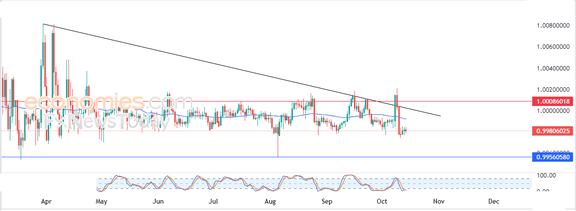 لهذا فتوقعاتنا تشير إلى المزيد من الهبوط لسعر العملة خلال تداولاته القادمة، طيلة ثبات مستوى المقاومة 1.0008601، ليستهدف مستوى الدعم المحوري 0.99560580.