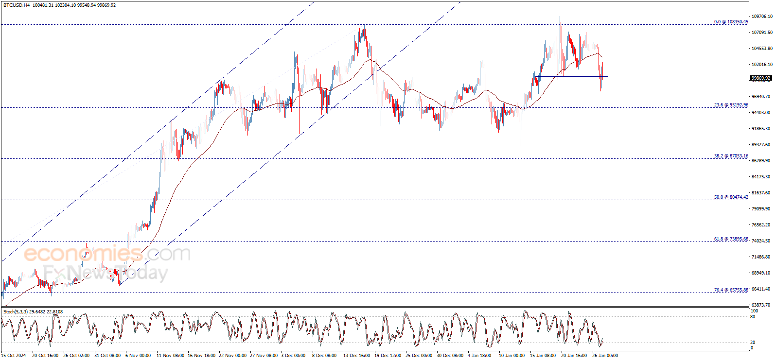 قدّم سعر البتكوين (BTCUSD) تداولات إيجابية ملحوظة ليهاجم مستوى 100150.00$ ويحاول الثبات فوقه، لكنه يعود للتداول دونه الآن، مما يبقي على السيناريو السلبي فعالاً للفترة القادمة، بانتظار الحصول على حافز سلبي يدفع السعر لتحقيق هدفنا التالي عند 95195.00$.
