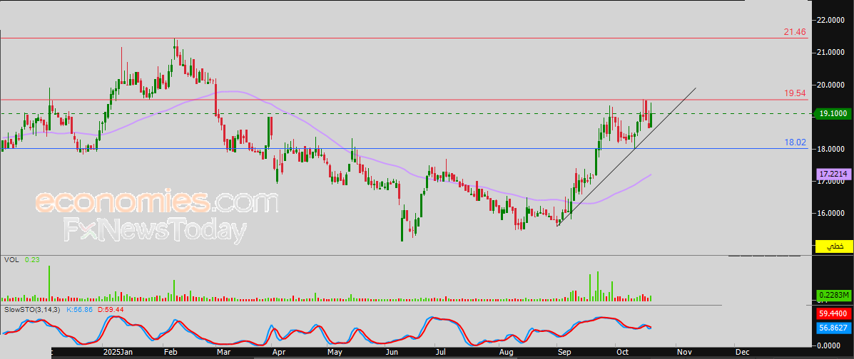 لهذا تشير توقعاتنا إلى صعود سعر السهم خلال تداولاته المستقبلية، خاصة في حالة اختراقه للمقاومة المذكورة 19.54 ريال، ليستهدف بعدها مستوى المقاومة المحوري 21.46 ريال.