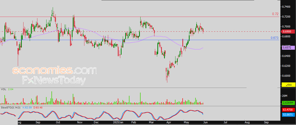 لهذا تشير توقعاتنا إلى ارتفاع سعر السهم خلال تداولاته القادمة، طيلة ثبات الدعم 0.673 ريال، ليستهدف مستوى المقاومة المحوري 0.72 ريال.