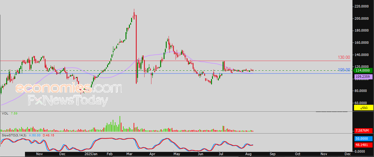 لذلك تشير توقعاتنا إلى صعود سعر السهم خلال تداولاته القادمة، بشرط ثبات مستوى الدعم 109.00 دينار، ليستهدف مستوى المقاومة المحوري 130.00 دينار.