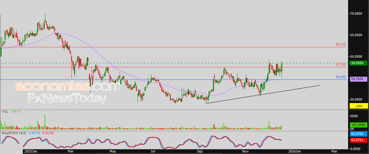 لهذا فتوقعاتنا تشير إلى صعود سعر السهم خلال تداولاته القادمة، خاصة طيلة استقراره أعلى سعر 57.55 ريال، ليستهدف مقاومته التالية عند سعر 62.20 ريال.