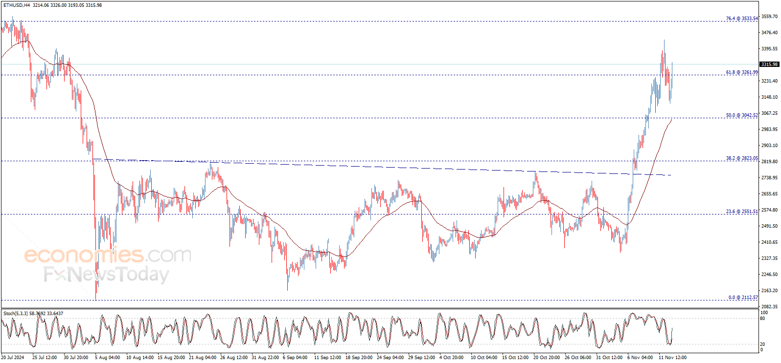 ارتدت تداولات سعر الإيثريوم (ETHUSD) صعوداً بشكل قوي ليخترق مستوى 3262.00$ ويحاول الثبات فوقه، ليعيد تفعيل الموجة الرئيسية الصاعدة ويتجه نحو تحقيق أهداف إيجابية تصل إلى 3533.55$ كمحطة رئيسية تالية، ليبقى الارتفاع مرجحاً خلال الجلسات القادمة بثبات السعر فوق مستوى 3262.00$.