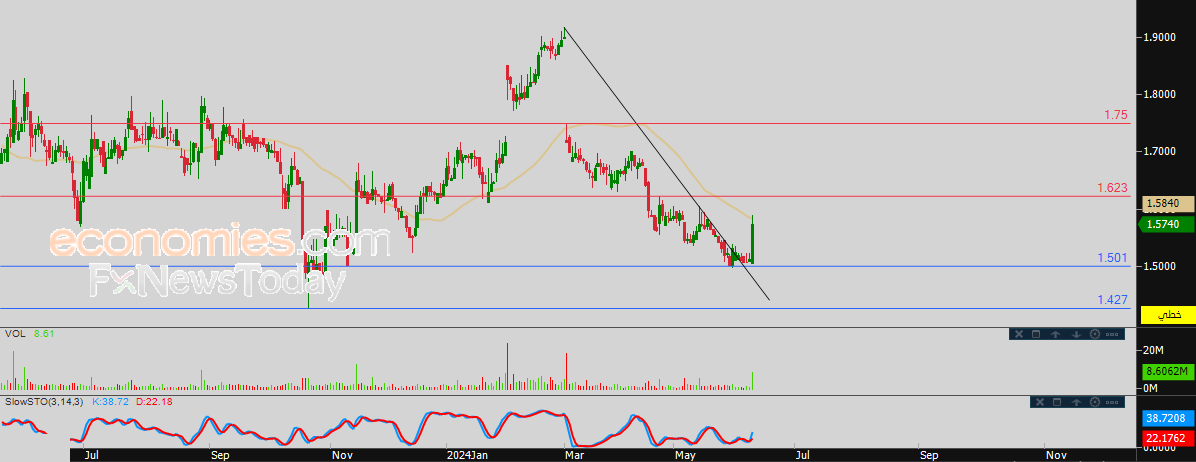 لهذا تشير توقعاتنا إلى المزيد من الصعود لسعر السهم خلال تداولاته القادمة، طيلة ثبات الدعم 1.501، ليستهدف أولى مستويات المقاومة عند سعر 1.623 ريال.