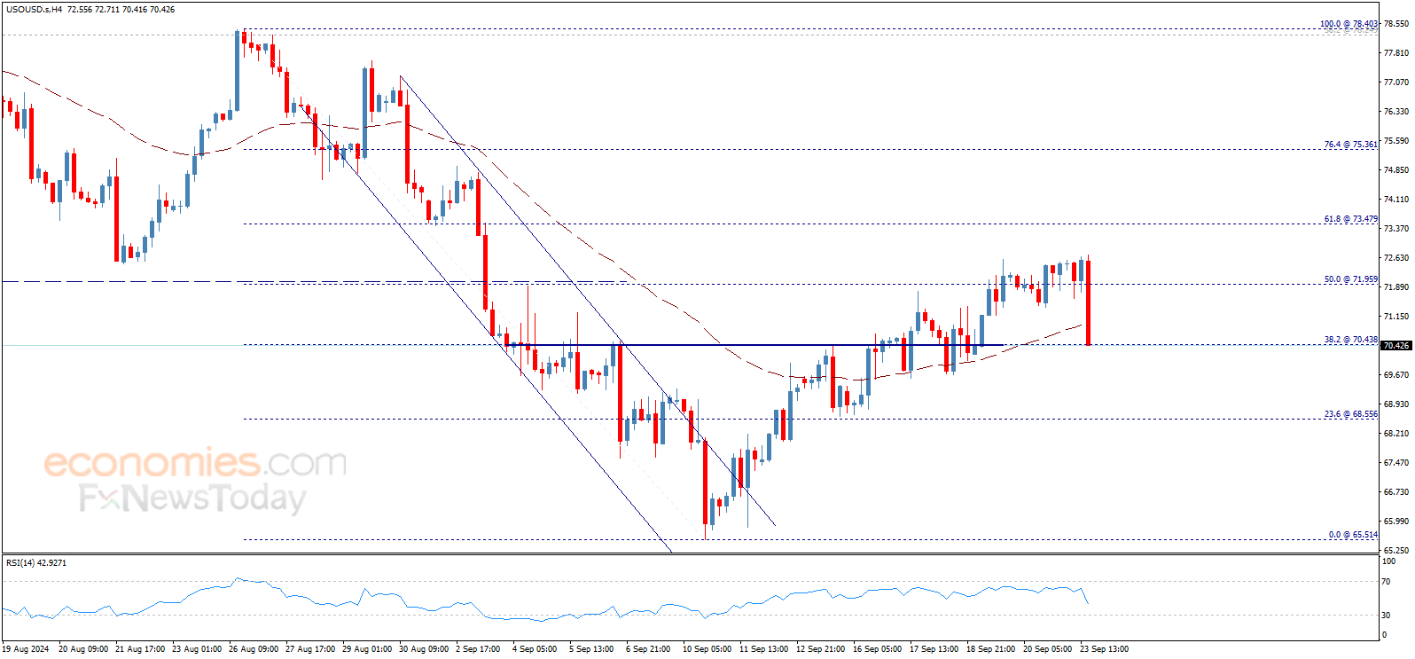 يواجه سعر النفط ضغط سلبي قوي ليكسر مستوى 71.95$ ويصل إلى مستوى 70.44$ بشكل مباشر، ويظهر مزيد من الميل الهابط ليقدّم إشارات على التوجه لتكبّد مزيد من الخسائر المحتملة خلال الجلسات القادمة، مع الإشارة إلى أن كسر المستوى الأخير سيدفع السعر نحو مناطق 68.55$ كمحطة سلبية تالية، في حين إن التماسك فوقه سيقود السعر للتعافي من جديد وزيارة مستوى 71.95$ من جديد.