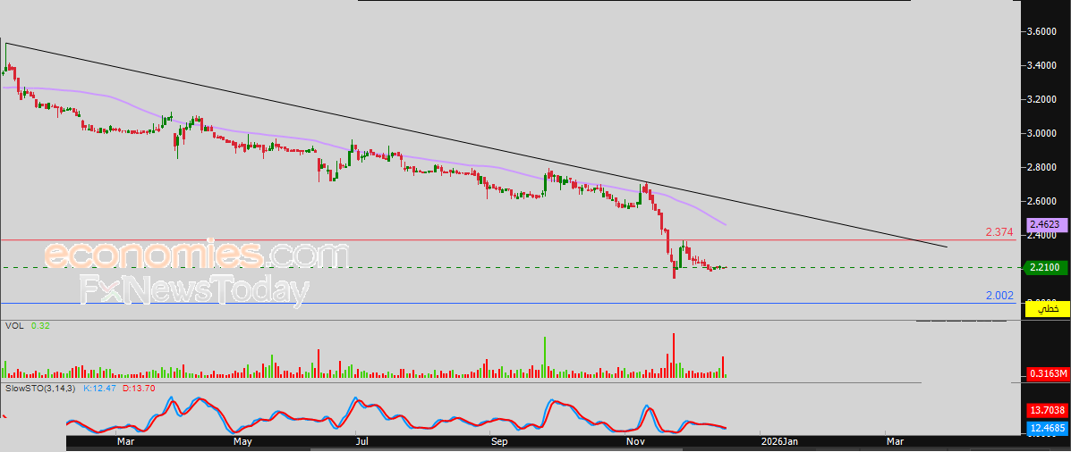 لهذا فتوقعاتنا تشير إلى هبوط سعر السهم خلال تداولاته القادمة، طيلة ثبات مستوى المقاومة 2.374 ريال، ليستهدف مستوى الدعم الرئيسي 2.00 ريال.