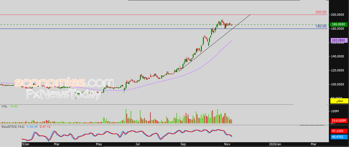 لهذا فتوقعاتنا تشير إلى صعود سعر السهم خلال تداولاته القادمة، طيلة استقراره أعلى سعر 180.00 دينار، ليستهدف مستوى المقاومة النفسي 200.00 دينار.