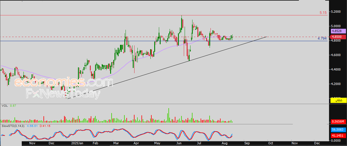 لهذا تشير توقعاتنا إلى ارتفاع سعر السهم خلال تداولاته القادمة، بشرط ثبات مستوى الدعم المهم 4.794 ريال، ليستهدف مستوى المقاومة المحوري 5.15 ريال.