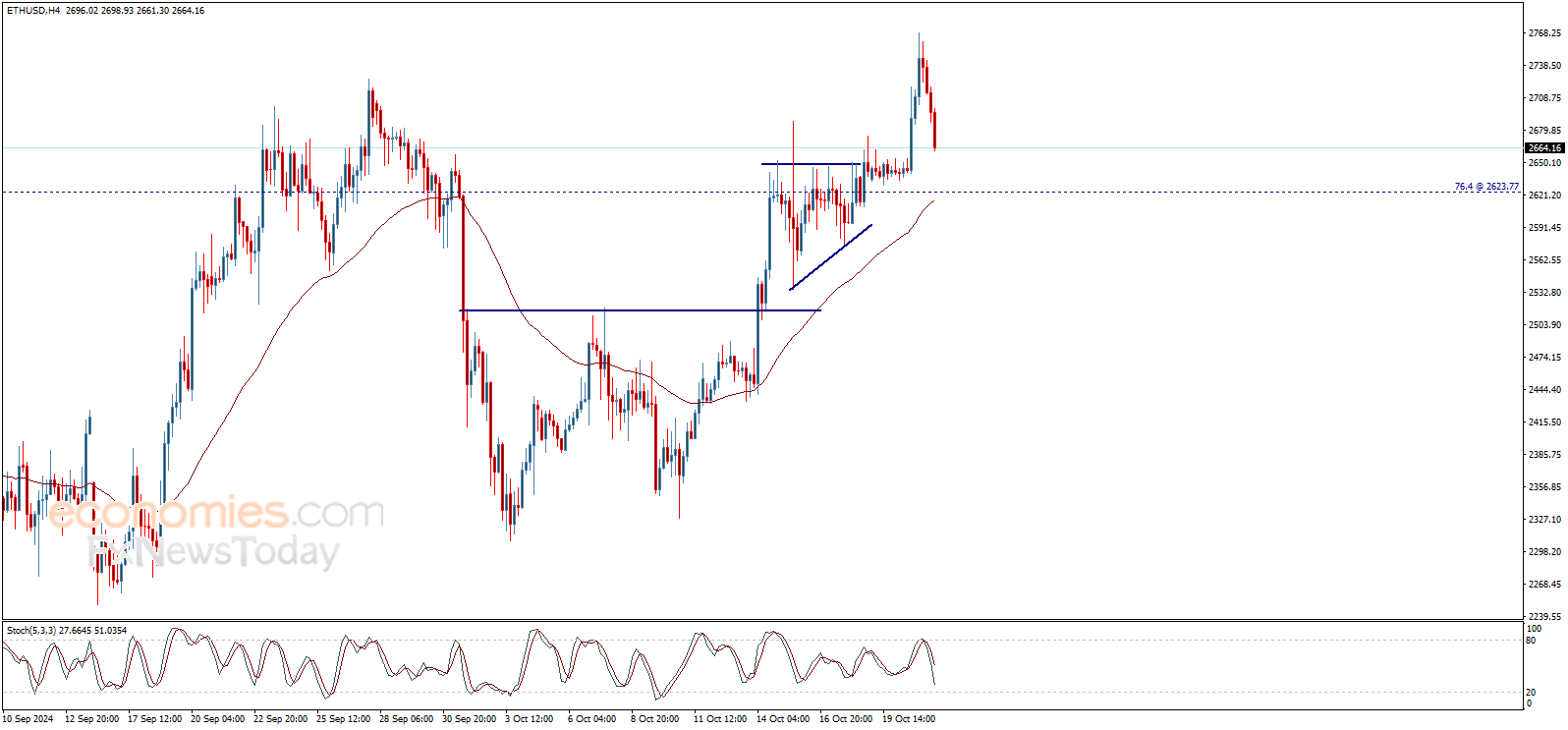 يتداول سعر الإيثريوم (ETHUSD) بسلبية ملحوظة، حيث يتجه نحو اختبار محتمل للدعم المحوري 2623.77$، مما يتطلب الانتباه من التداولات القادمة، حيث إن كسر هذا المستوى سيوقف الموجة الرئيسية الصاعدة ويضغط على السعر للتحوّل إلى الانخفاض، بينما يحتاج السعر لتخطّي 2705.00$ لتعزيز فرص استئناف الاتجاه الرئيسي الصاعد من جديد.