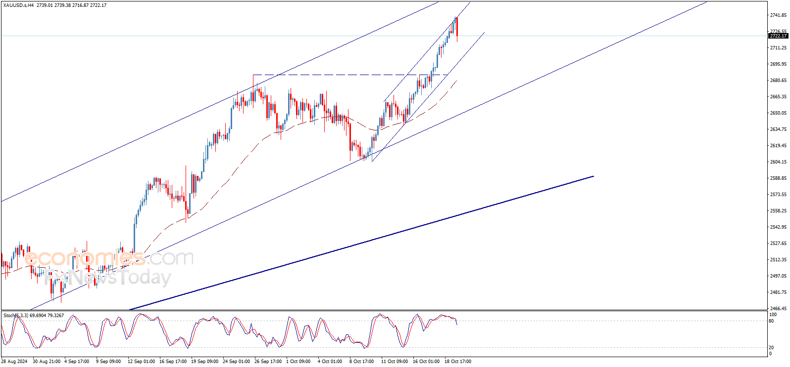 ترتد تداولات سعر الذهب هبوطاً بشكل ملحوظ بعد اختبار مقاومة القناة الفرعية الصاعدة التي تظهر بالرسم البياني، ليتجه نحو اختبار محتمل لدعم هذه القناة حول 2700.00$ قبل العودة للارتفاع من جديد، مع التذكير بأهمية الثبات فوق الدعم المذكور لضمان استمرار الموجة الرئيسية الصاعدة التي تتواجد أهدافها التالية عند 2745.00$ ثم 2765.00$.