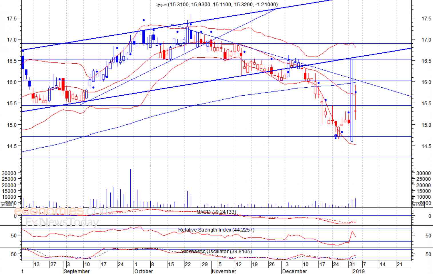 ومن المتوقع ان يكون النطاق السعري خلال جلسة اليوم بين مستوى الدعم وهو 14.90 وبين مستوى المقاومة هو 15.60 ريال
