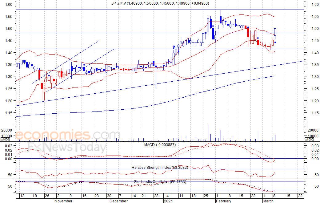 من المتوقع ان يكون النطاق السعري خلال جلسة اليوم بين مستوى الدعم وهو 1.47 وبين مستوى المقاومة هو 1.53 ريال