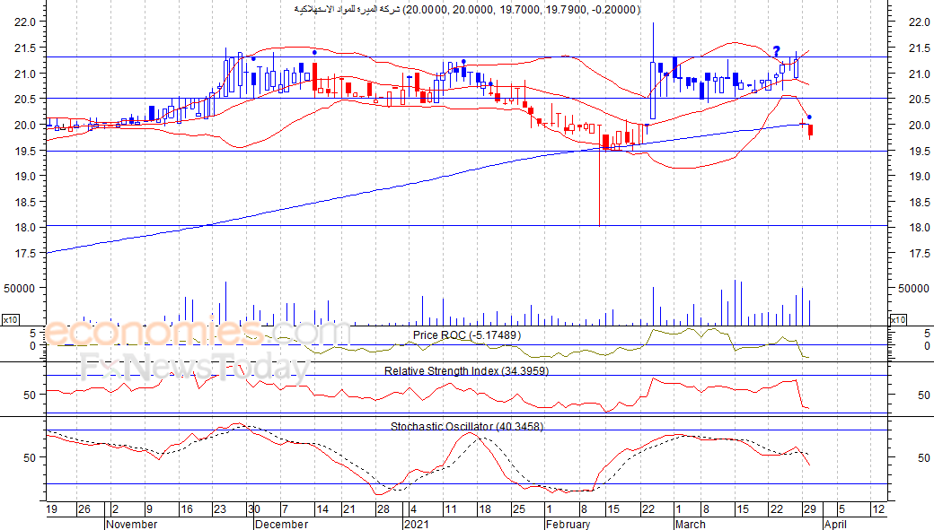 ومن المتوقع ان يكون النطاق السعري خلال جلسة اليوم بين مستوى الدعم هو 19.53 ريال وبين مستوى المقاومة هو 19.96 ريال