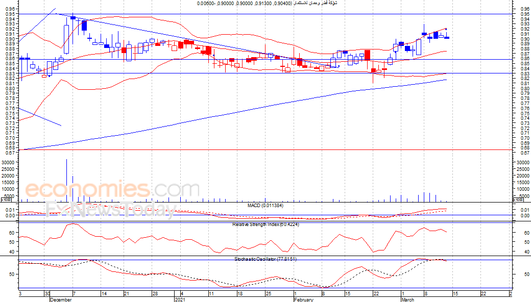 ومن المتوقع ان يكون النطاق السعري خلال جلسة اليوم بين مستوى الدعم هو 0.89 ريال وبين مستوى المقاومة هو 0.91 ريال