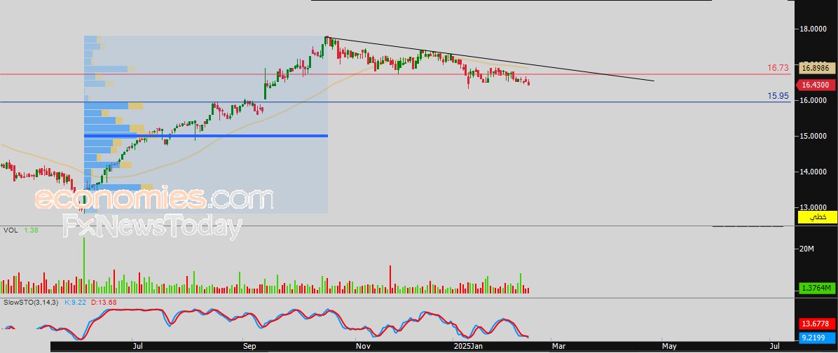 تراجع سعر سهم QNB (QNBK) خلال تداولاته الأخيرة على المستويات اللحظية، متأثراً بكسره في وقت سابق لمستوى الدعم المحوري 16.73 ريال، وسط سيطرة الاتجاه التصحيحي الهابط على المدى القصير وتداولاته بمحاذاة خط اتجاه، مع توارد الإشارات السلبية بمؤشرات القوة النسبية