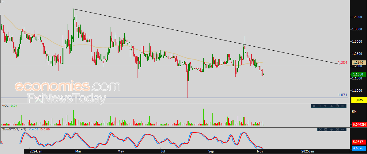 لهذا تشير توقعاتنا إلى ترجيح سيناريو عودة هبوط سعر السهم خلال تداولاته القادمة، طيلة استقراره دون مستوى المقاومة 1.204، ليستهدف مستوى الدعم المحوري 1.071. |