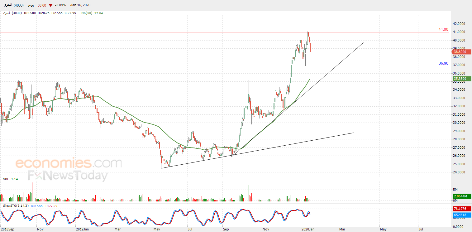 لذلك نحن نرجح عودة ارتفاع السهم خلال تداولاته القادمة، طيلة ثبات الدعم 36.90، ليستهدف مستوى المقاومة المحوري 41.00.