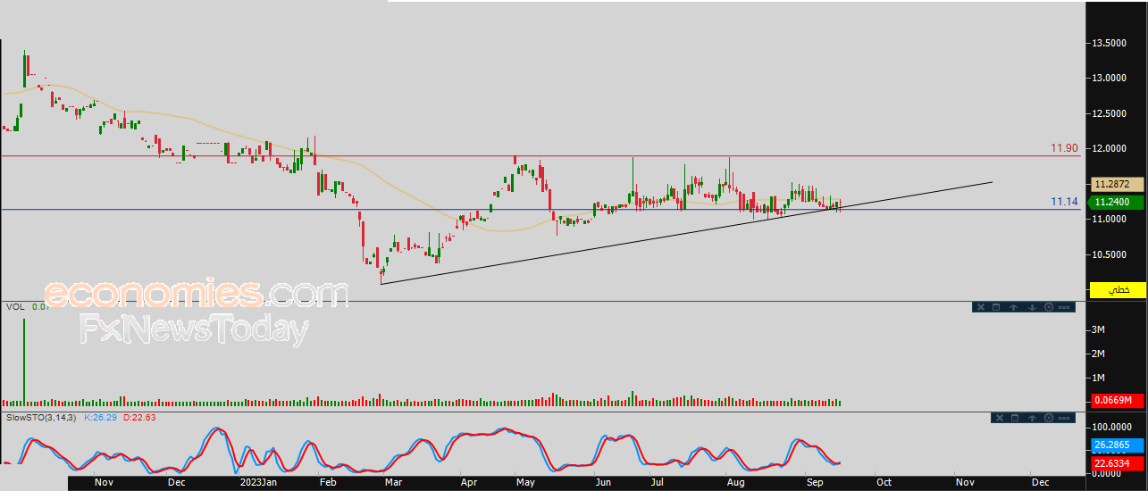 لذلك نحن نرجح ارتفاع السهم خلال تداولاته القادمة، بشرط ثبات مستوى الدعم 11.14، ليستهدف مستوى المقاومة المحوري 11.90.