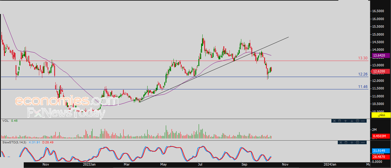 لذلك نحن نتوقع المزيد من الانخفاض للسهم خلال تداولاته القادمة، طيلة ثبات المقاومة 13.30، ليستهدف أولى مستويات الدعم 12.26 استعداداً لكسره.