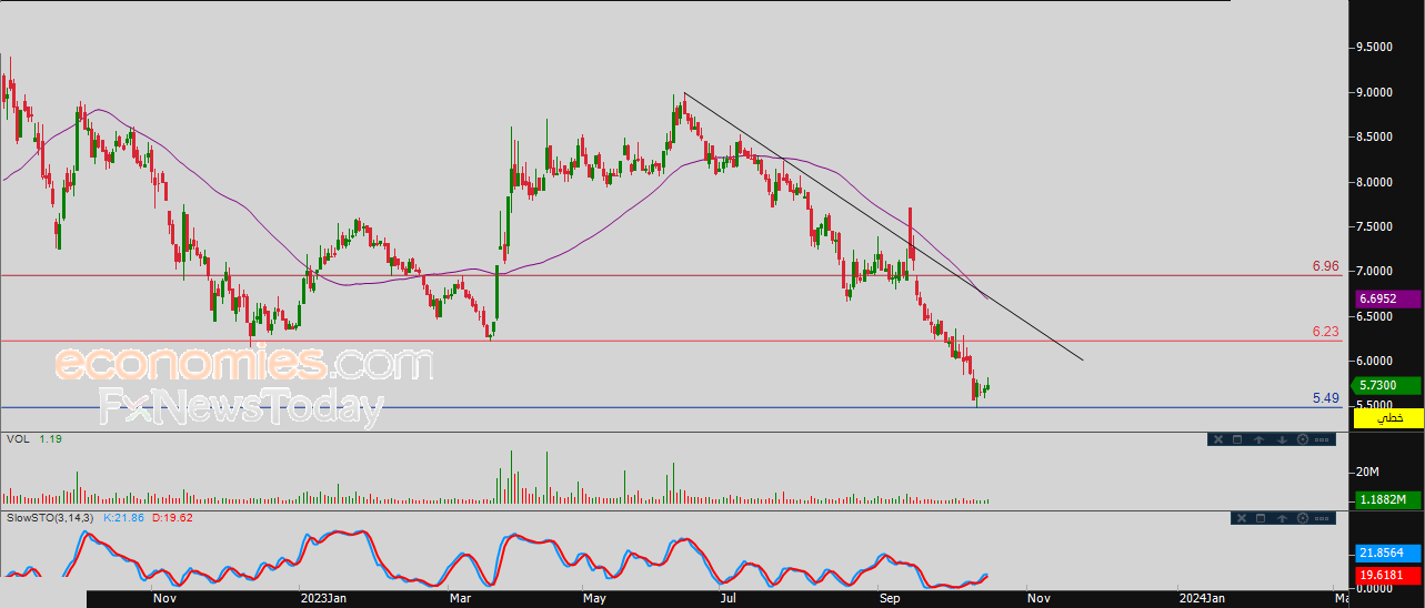 لهذا نحن نرجح عودة انخفاض السهم خلال تداولاته القادمة، طيلة ثبات المقاومة 6.23، ليستهدف مستوى الدعم 5.50.