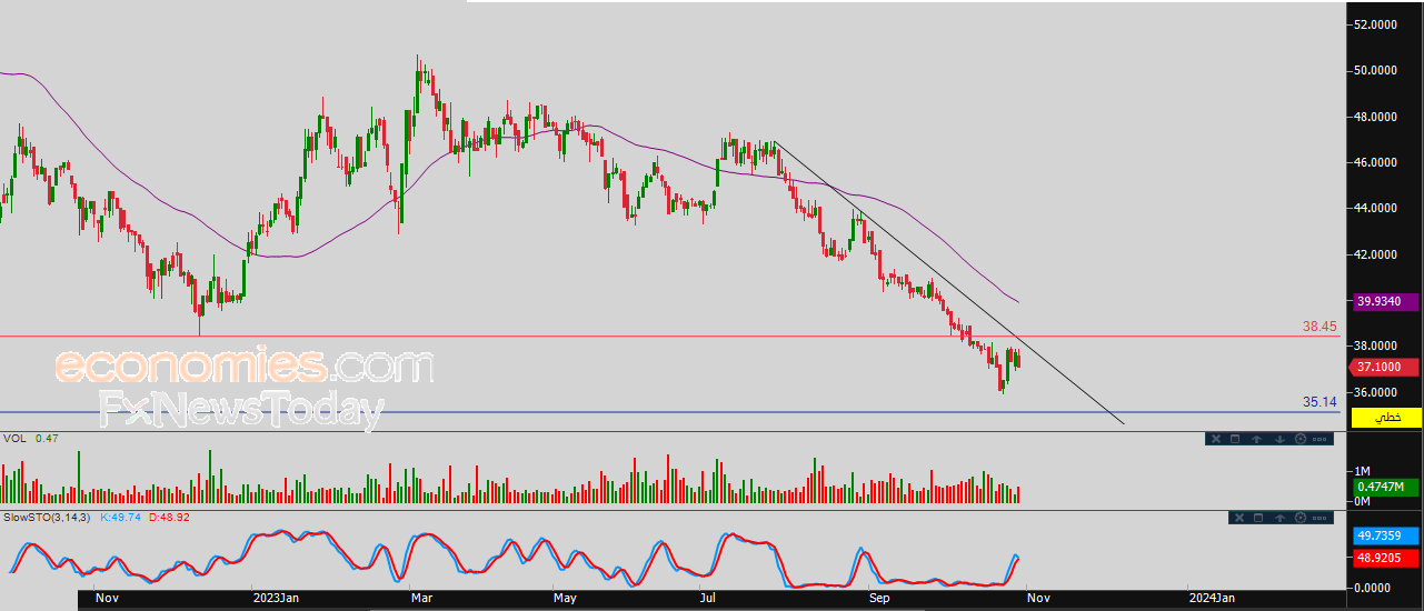 لهذا تشير توقعاتنا إلى المزيد من الانخفاض للسهم خلال تداولاته القادمة، طيلة استقراره دون مستوى المقاومة 38.45، ليستهدف مستوى الدعم 35.15.