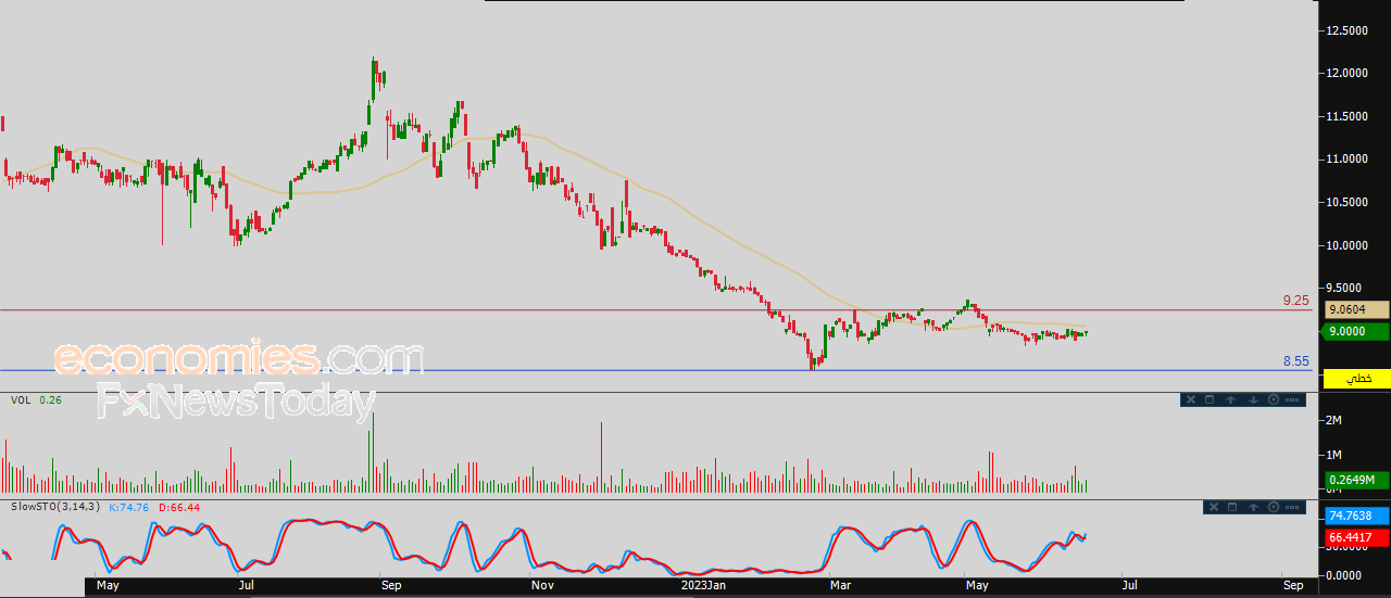 لهذا نحن نرجح عودة انخفاض السهم خلال تداولاته القادمة، طيلة ثبات المقاومة 9.25، ليستهدف مستوى الدعم 8.55.