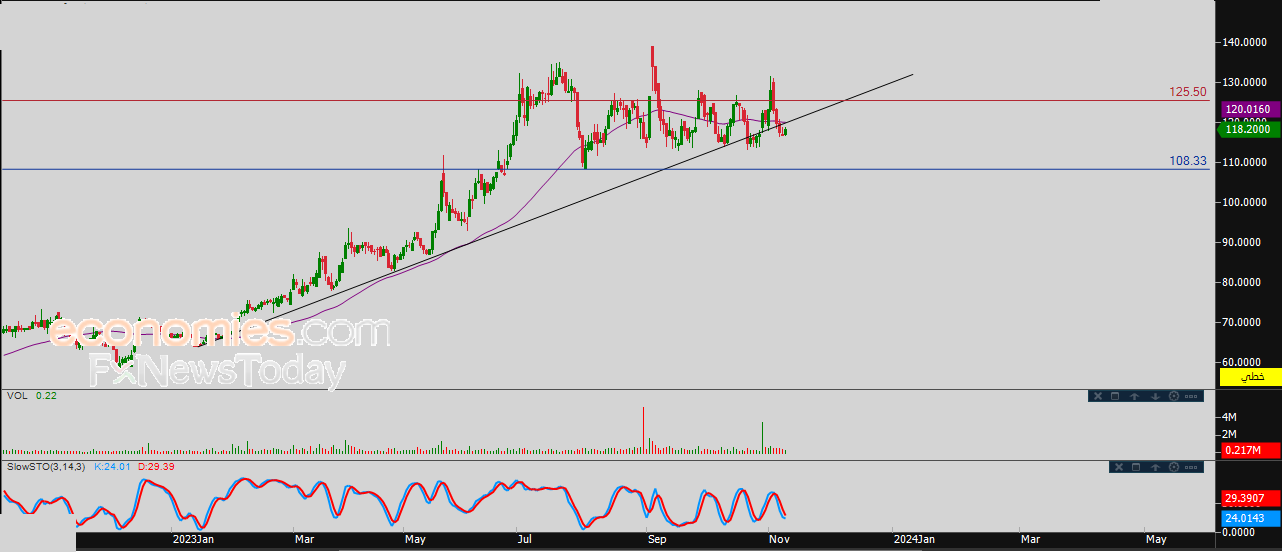 لذلك تشير توقعاتنا إلى ترجيح سيناريو عودة انخفاض السهم خلال تداولاته القادمة، طيلة استقراره دون مستوى المقاومة 125.50، ليستهدف مستوى الدعم المحوري 108.33.
