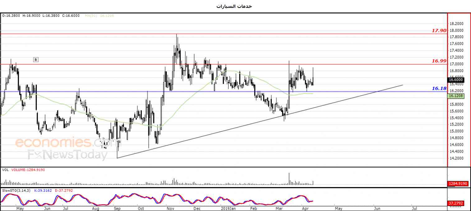 نطاق التداول المتوقع لهذا اليوم ما بين مستوى الدعم 16.18 ومستوى المقاومة 17.20 .