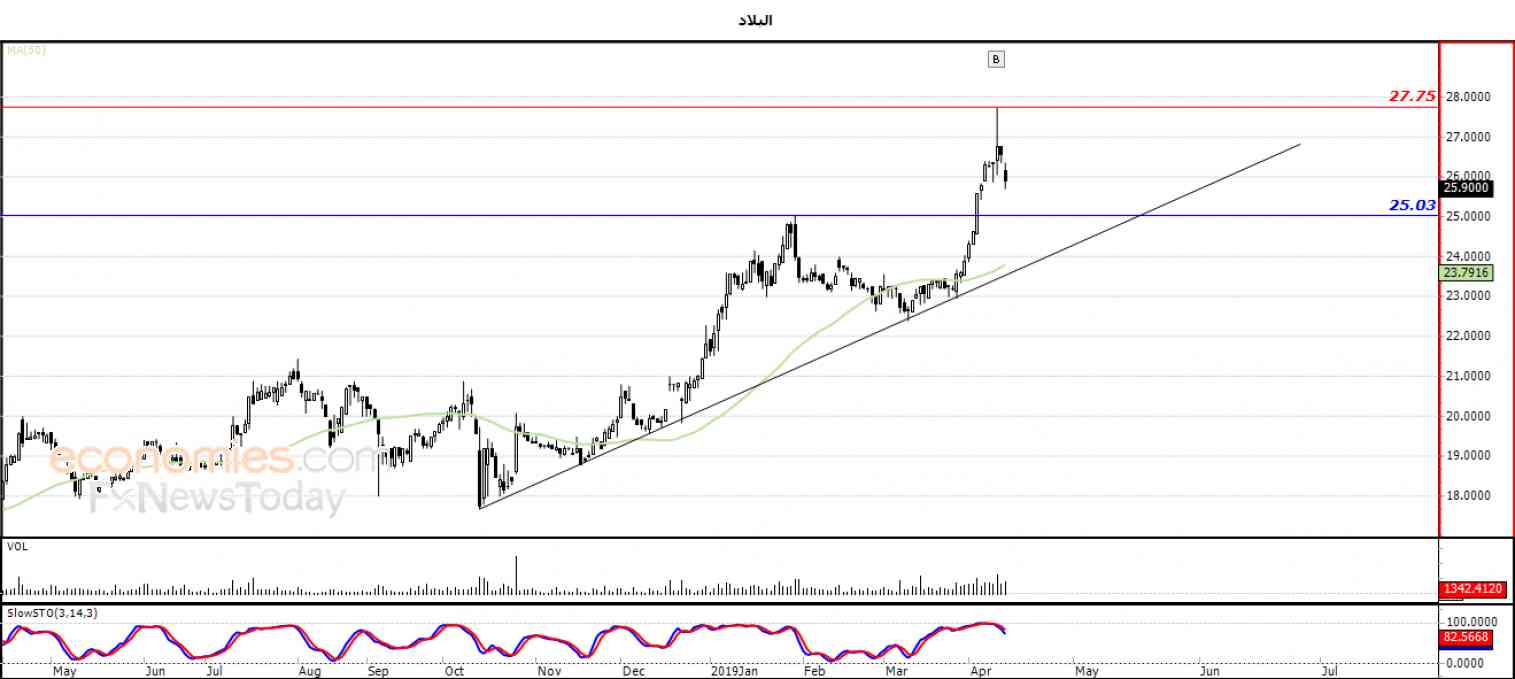 نطاق التداول المتوقع لهذا اليوم ما بين مستوى الدعم 25.03 ومستوى المقاومة 27.75 .
