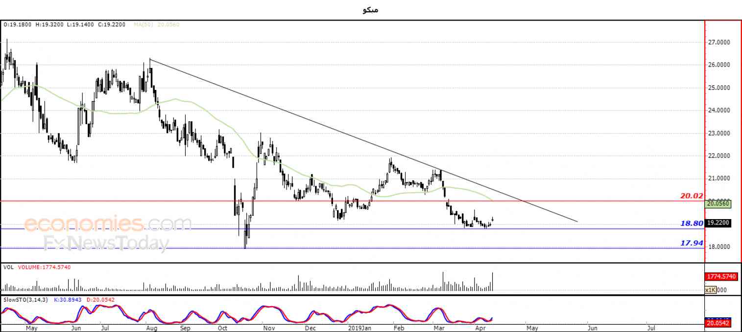نطاق التداول المتوقع لهذا اليوم ما بين مستوى الدعم 18.80 ومستوى المقاومة 20.02 .