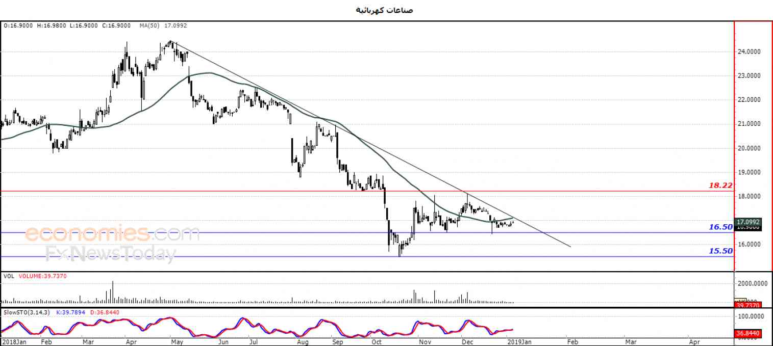نطاق التداول المتوقع لهذا اليوم ما بين مستوى الدعم 16.50 ومستوى المقاومة 17.82 .