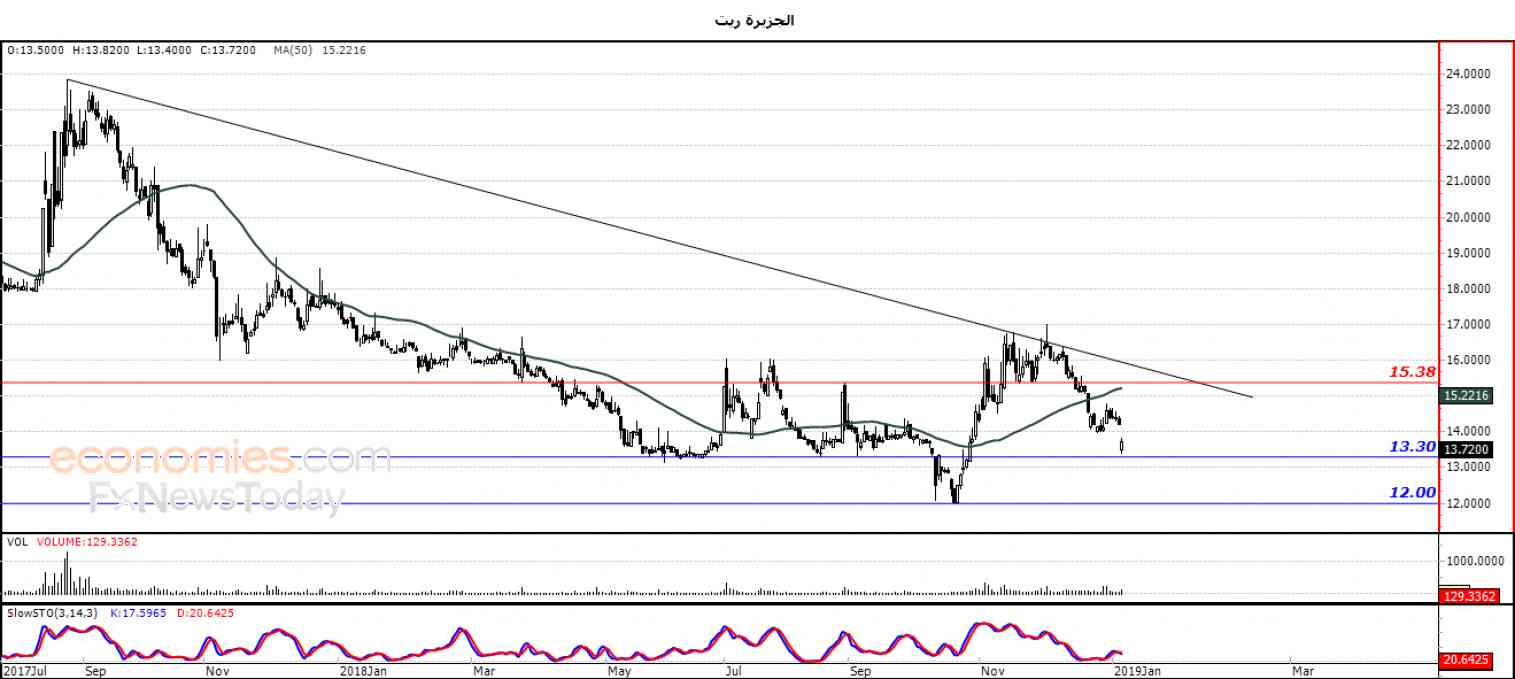 نطاق التداول المتوقع لهذا اليوم ما بين مستوى الدعم 13.00 ومستوى المقاومة 14.36 .