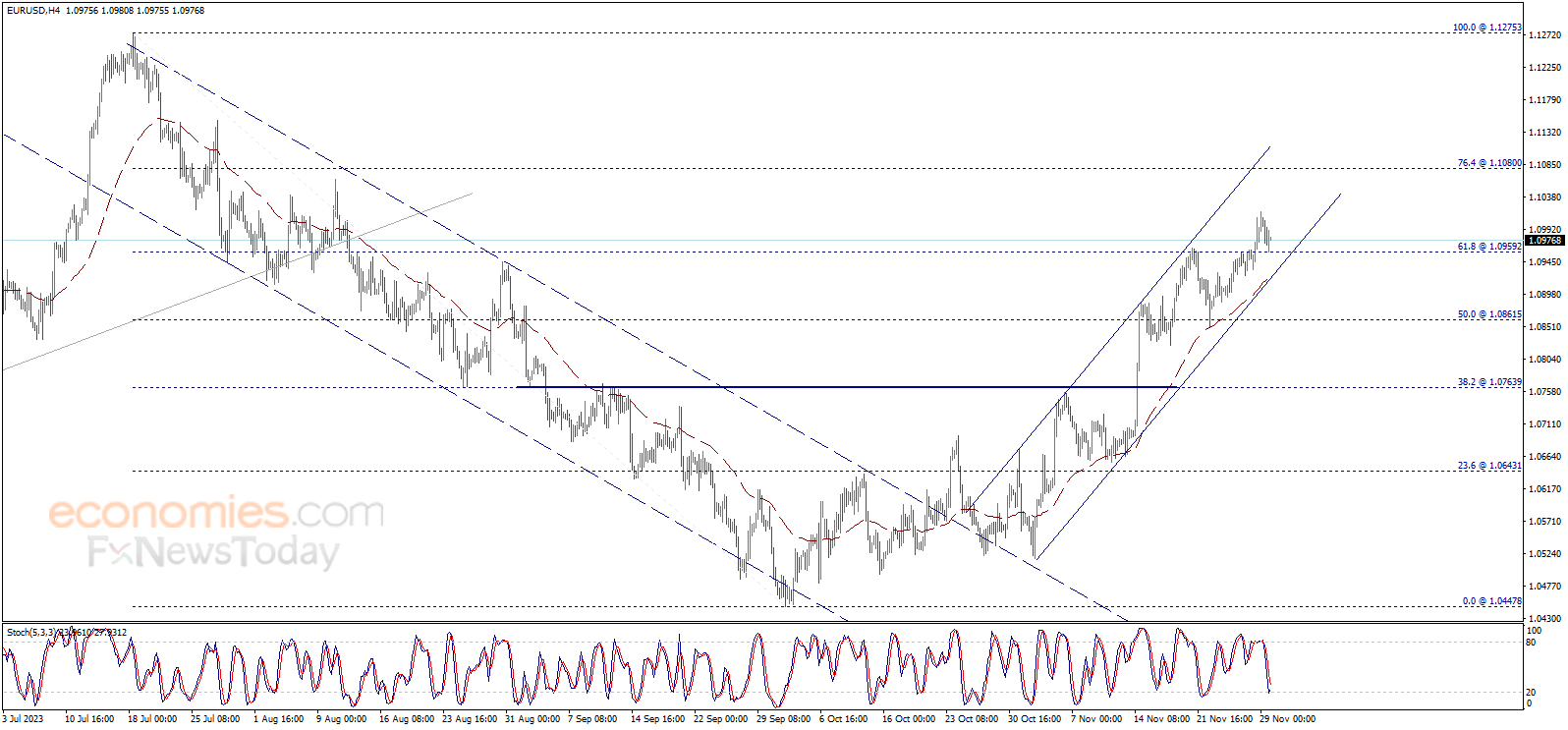 عاد زوج اليورو مقابل الدولار للانخفاض ليختبر الدعم المحوري 1.0960، ونلاحظ أن السعر يحافظ على ثباته فوقه، ليبقى سيناريو الاتجاه الصاعد قائماً للفترة القادمة، يدعمه وصول مؤشر ستوكاستيك إلى مناطق التشبع في البيع، مع التذكير بأن هدفنا الرئيسي المنتظر يصل إلى 1.1080.