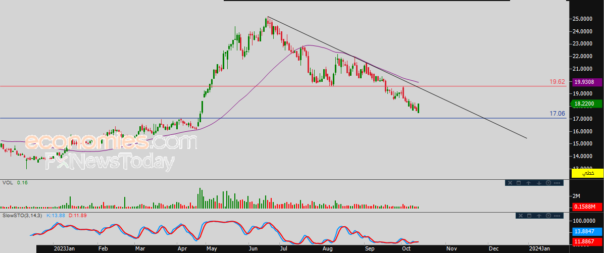 ولهذا تشير توقعاتنا إلى ترجيح سيناريو عودة انخفاض السهم خلال تداولاته القادمة، طيلة ثبات المقاومة 19.62، ليستهدف أولى مستويات الدعم عند 17.00.